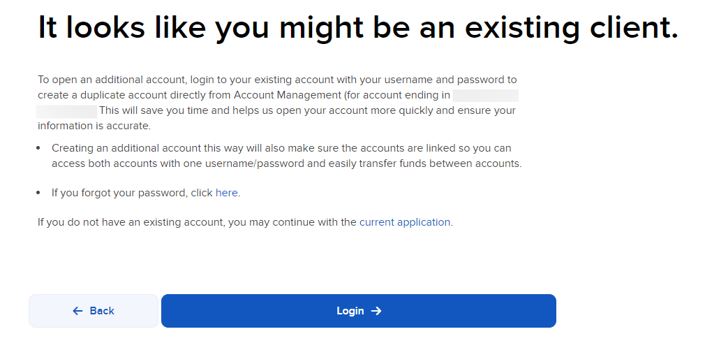 Most people will not be prompted with this next step, so you can ignore it, but if you were or still are a client with some other brokerage that is partnered with IBKR (in Serbia, for example TradeWin24) then you will be asked to log in. IBKR allows explicitly for you to have any number of accounts. Usually if you already have an account, it is easier to login and create another one, but some partners have implemented their own custom UI, which for some reason doesn’t have this option. If you find yourself in this position, feel free to Ignore this prompt and click the “current application” link and do not login with your old account.